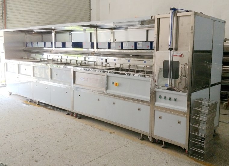 轉(zhuǎn)角式透鏡超聲波清洗機(jī)我司設(shè)計的一款型號為VGT-12162FH半自動光學(xué)鏡片超聲波清洗機(jī)。此款型號為12個功能槽,配置有循環(huán)過濾系統(tǒng)、自動恒溫系統(tǒng)、拋動系統(tǒng)、電控裝置等組成。設(shè)備采用環(huán)保型水基溶劑洗滌、純水漂洗、純水慢拉及熱風(fēng)干燥,為環(huán)保型清洗機(jī)。