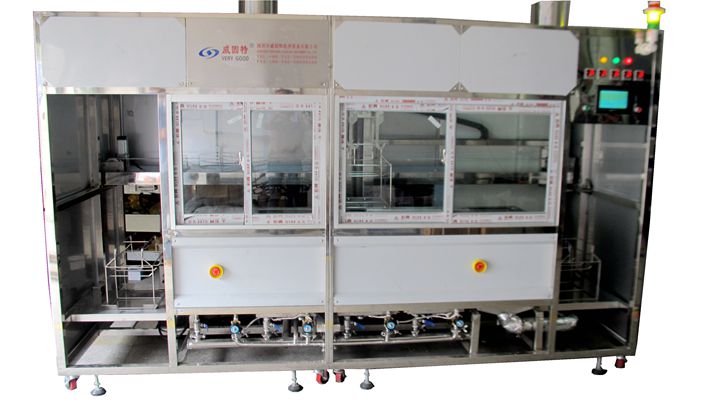 深圳威固特全自動硅襯底LED超聲波清洗機該清洗機是專為硅襯底LED清洗而設計的超聲波清洗設備。整個工藝流程使用PLC編程控制,可根據清洗工藝要求,靈活設置動作參數。